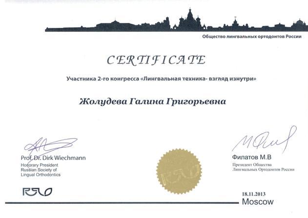 сертификационный курс «Лингвальная система WIN» Dr. Dirk Wiechmann Участник съездов ортодонтов России, 1-го, 2-го конгрессов лингвальных ортодонтов России