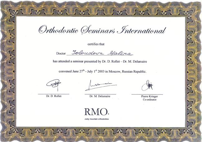 семинар по ортодонтии Dr. D. Rollet, Dr. M. Delamare; курс обучения «Микропротезирование, вкладки, накладки, виниры из керомеров», «ПрезиДЕНТ - центр повышения квалификации»