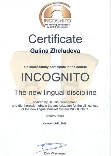семинар «Лингвальная техника прямой дуги» Dr. Didier Fillion, сертификационный курс «INCOGNITO The new lingual discipline», Dr. Dirk Wiechmann