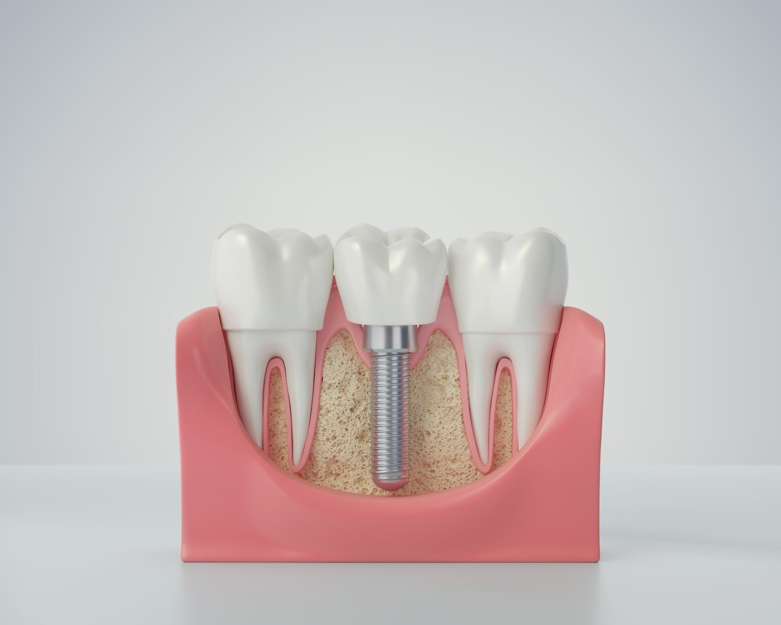 Тело импланта скрывается в кости и после установки полностью невидимо.