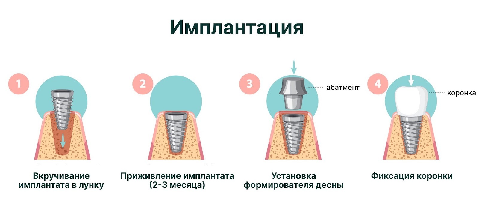 Абатмент ставят, когда десна уже сформировалась и готова к протезированию.