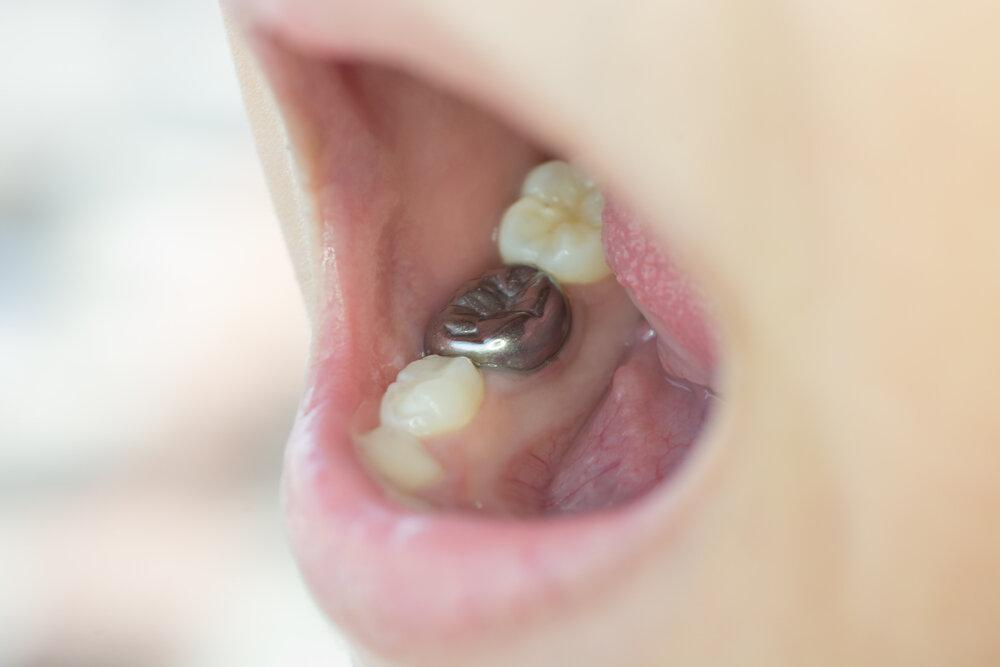 Если зубик разрушен более чем на 50%, то обычная пломба не выдержит нагрузки и выпадет. В этом случае рекомендуется установка коронок на молочные зубы.