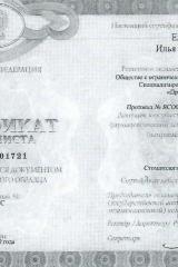 2019г. — Диплом о профессиональной переподготовке. Стоматология ортопедическая