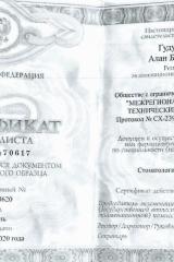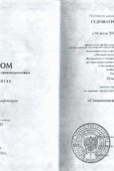 2020г. — Удостоверение о повышении квалификации. «Заболевания пародонта и слизистой оболочки полости рта.»