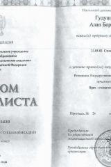 2016г. — «Северо-Осетинская государственная медицинская академия». Врач-стоматолог общей практики