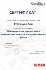 2023г. — SIMKO «Одномоментная имплантация и немедленная нагрузка. Ключевые факторы успеха»