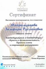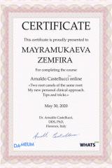 2020г. — Удостоверение о повышении квалификации по программе «Стоматология терапевтическая».