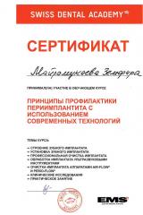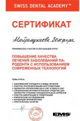 2017г. — «Повышение качества лечения заболеваний пародонта с использованием современных технологий» Swiss dental academy;