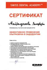 2019г. — «Эффективное применение ультразвука в эндодонтии» Swiss dental academy;