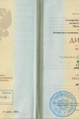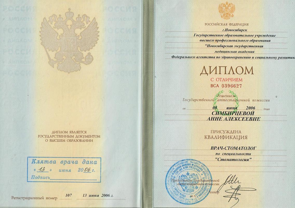 2006г. — ВУЗ по специальности Стоматология. Новосибирский государственный медицинский университет
