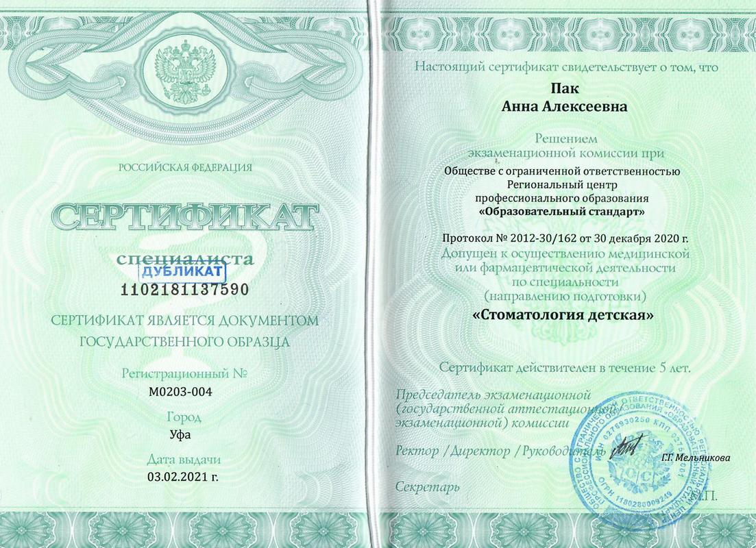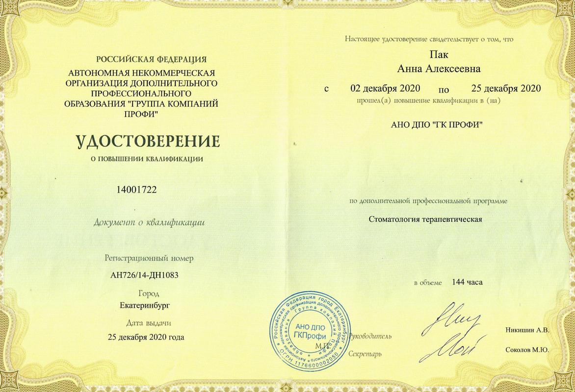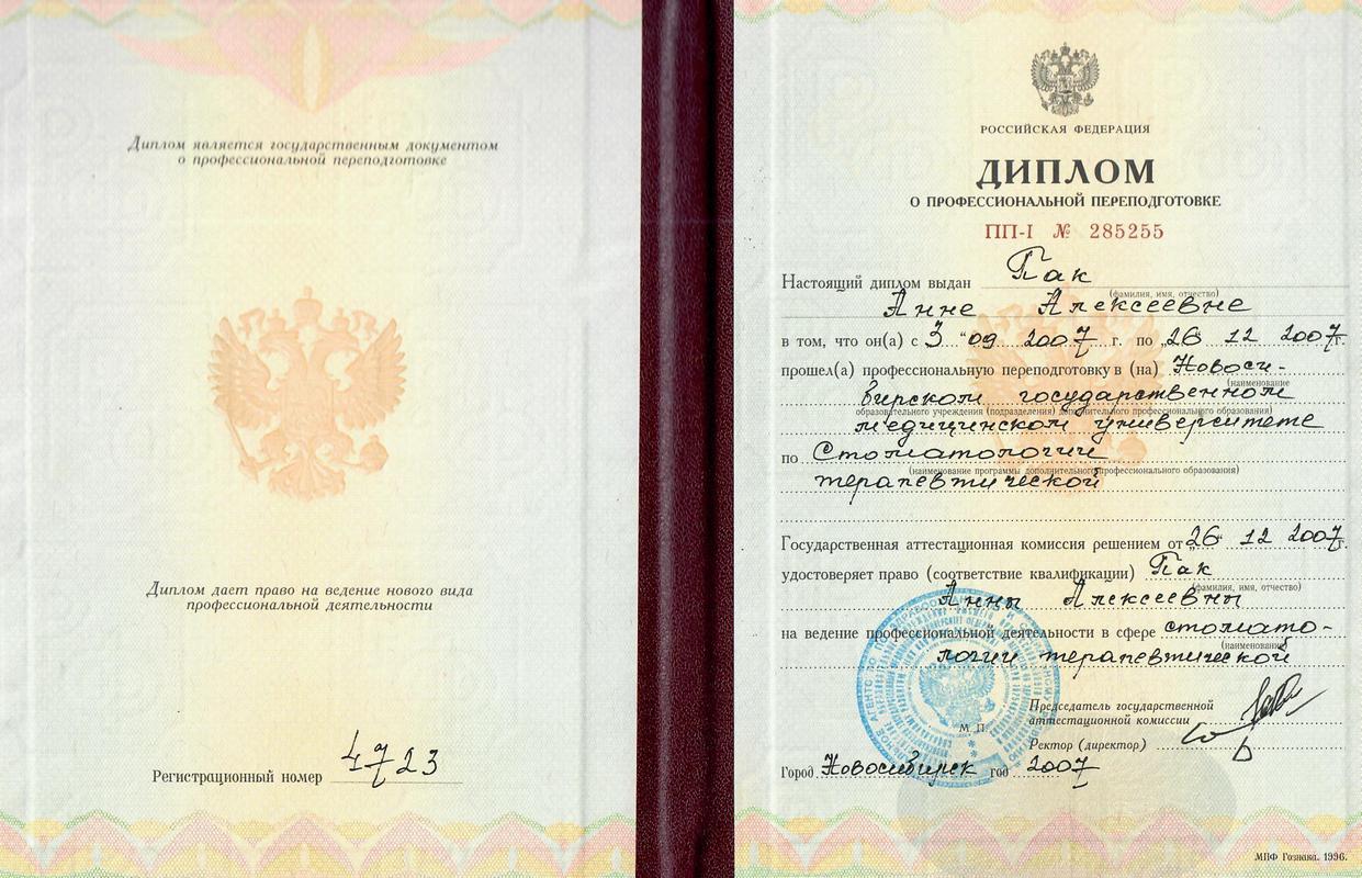 2007г. — Интернатура по специальности Стоматология. Новосибирская областная стоматологическая поликлиника