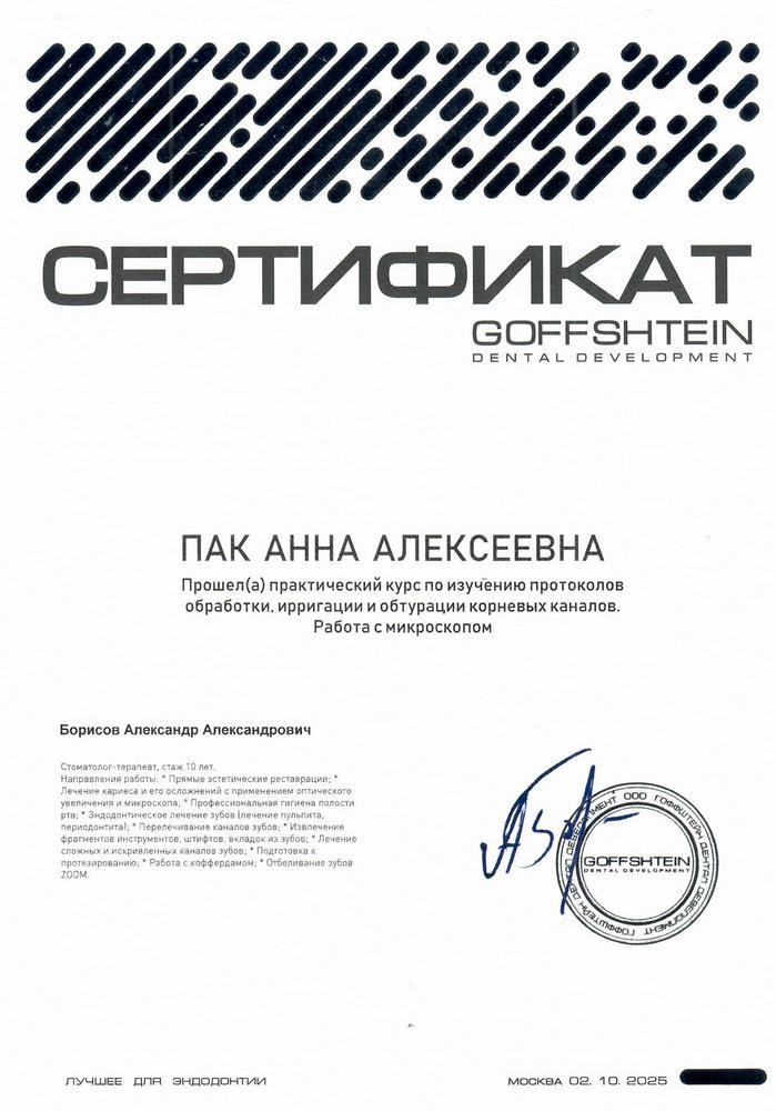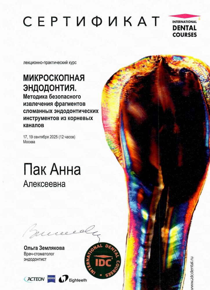 2025г. — Изучение протоколов обработки, ирригации и обтурации корневых каналов. Работа с микроскопом