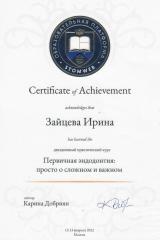 2022г. — Сертификат «Clinical protocols in instrumentation and obturation»