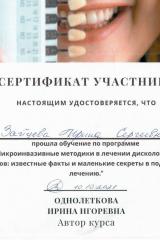 2021г. — Сертификат «Микроинвазивные методики в лечении дисколоритов зубов: известные факты и маленькие секреты в подходе к лечению»