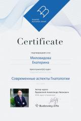 Благодарность Миловидова Екатерина Викторовна, хочу выразить огромную благодарность. Замечательный врач, прекрасный человек. Никогда не остается равнодушной. Делает очень сложную работу с максимальным комфортом для пациента.