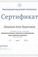 Выражаю огромную благодарность и признательность заведующей детским отделением, врачу - стоматологу Широкой Алле Борисовне!!!! Лечили кариес и пульпит у ребенка 5 лет 8-ми зубов. Безусловно, как и любая мама, я очень переживала и, как оказалось, абсолютно напрасно. Алла Борисовна буквально с первых минут нашла подход к ребёнку, лечение прошло быстро и безболезненно. Также была рекомендована оптимальная периодичность лечения. Ребёнок к каждому визиту готовил поделку, чтобы подарить "зубной фее". С момента лечения последнего зуба прошло чуть больше месяца, а дочь мечтает стать "зубным врачом". Думаю, что подобное поведение ребёнка лучше любых слов говорит о профессионализме и замечательных качествах доктора.
