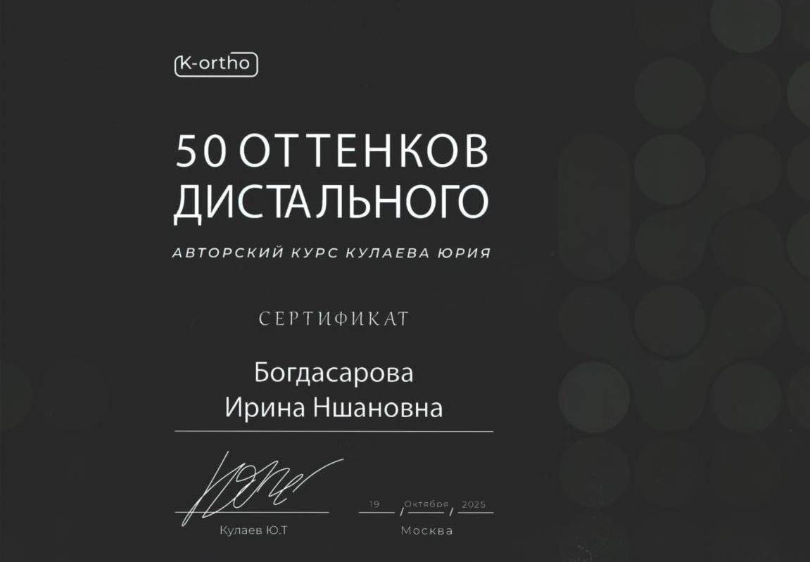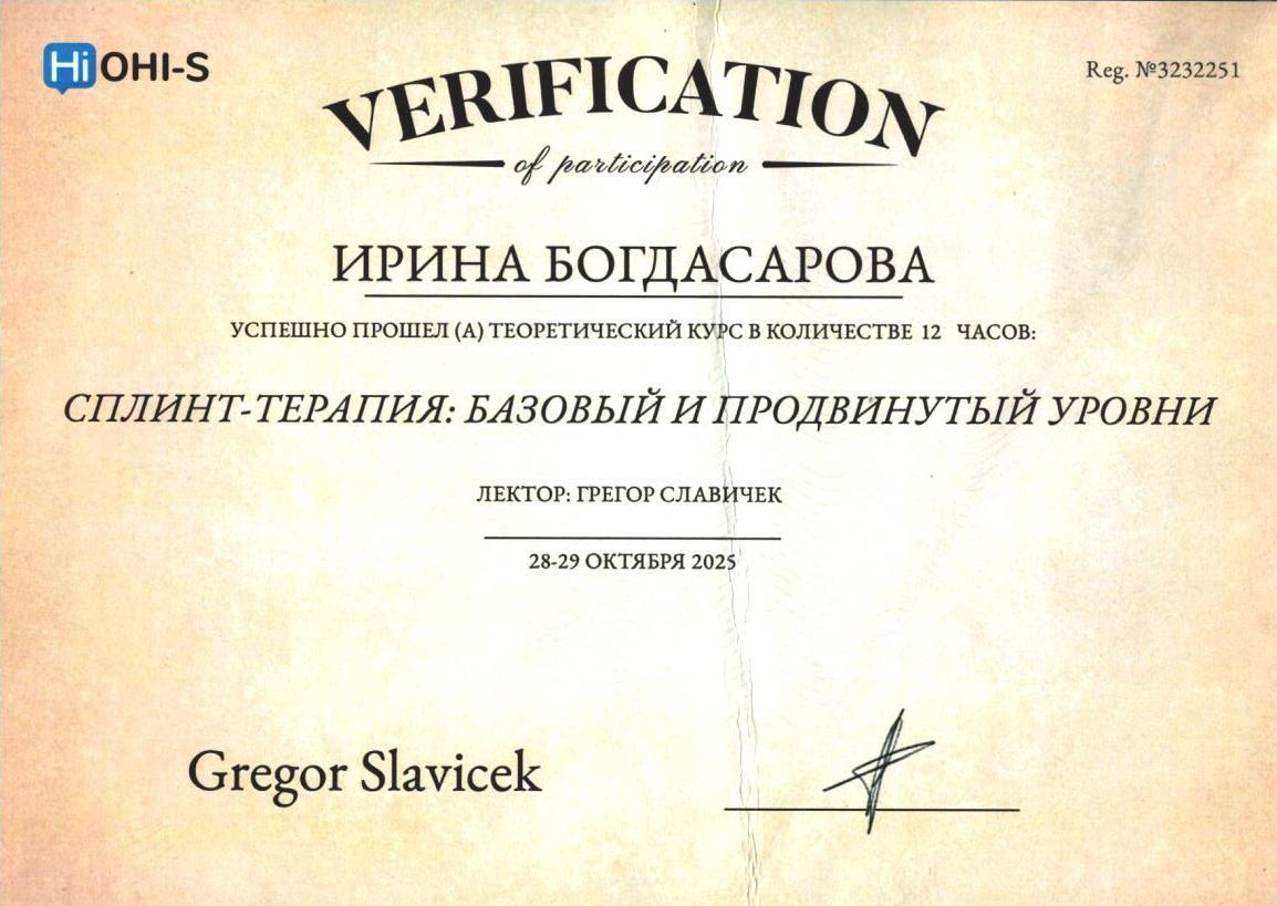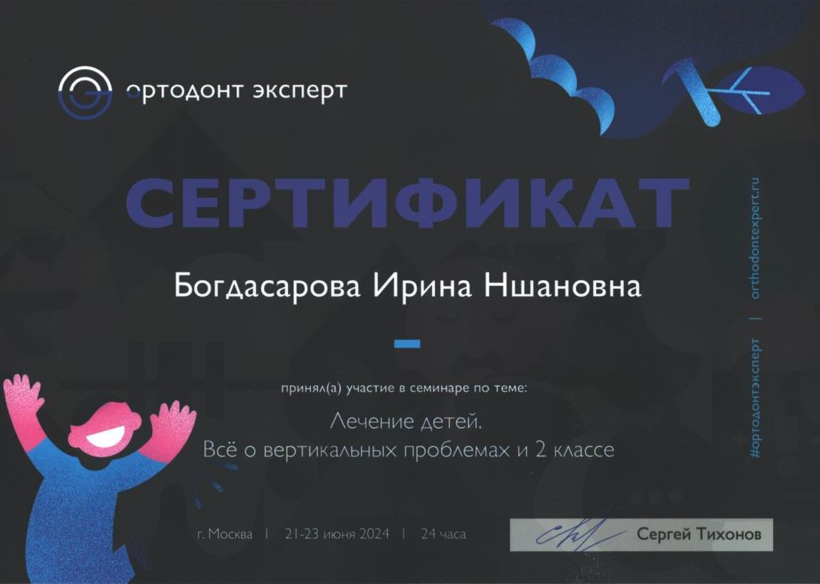2012 г. — Диплом по специальности врач-стоматолог, Рязанский Государственный медицинский университет им. И.П. Павлова