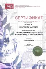 2009 г. — Диплом по специальности врач-стоматолог, Московский государственный медико-стоматологический университет