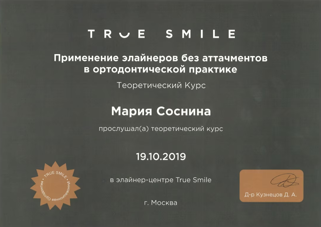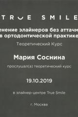 2019г. — «Применение элайнеров без аттачментов в ортодонтической практике»