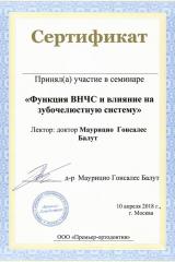 2016г. — Московский государственный медико-стоматологический университет им. А.И.Евдокимова, Интернатура по специальности стоматология общей практики.