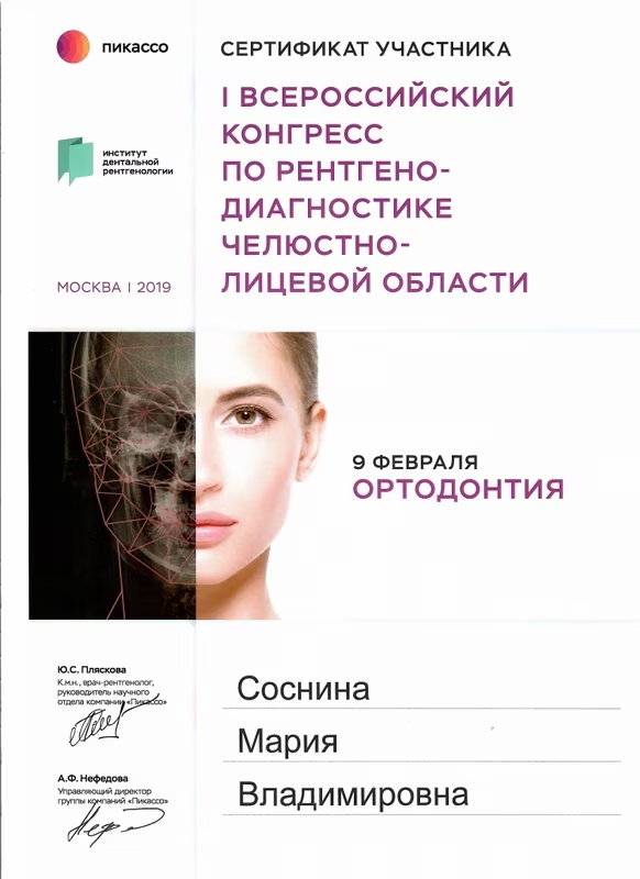 2019г. — I Всероссийский конгресс «Рентгено-диагностика челюстно-лицевой области»
