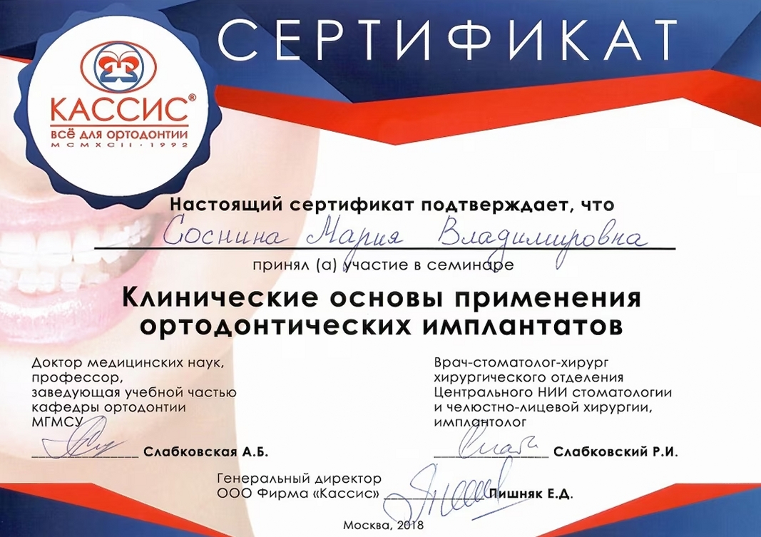 2018г. — «Клинические основы применения ортодонтических имплантов»