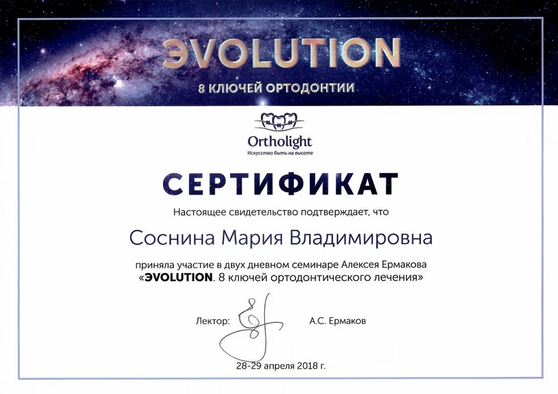 2018г. — Семинар «Эvolution. 8 ключей ортодонтического лечения»