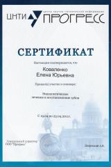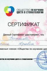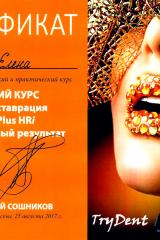 2016 г. - Сертификат по специальности «Стоматология терапевтическая»