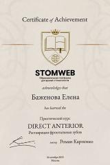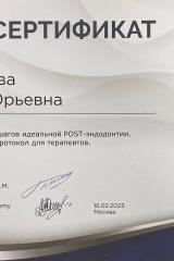 2020 г. — Сертификат по специальности «Стоматология терапевтическая»