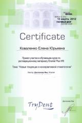 2012г. - Новые тенденции в консервативной стоматологии. Сертификат, г. Москва