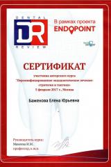 2017 г. - Курс «Персонифицированное эндодонтическое лечение: стратегия и тактика» Проф. Макеева И. М. Сертификат, г. Москва