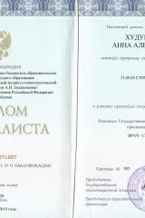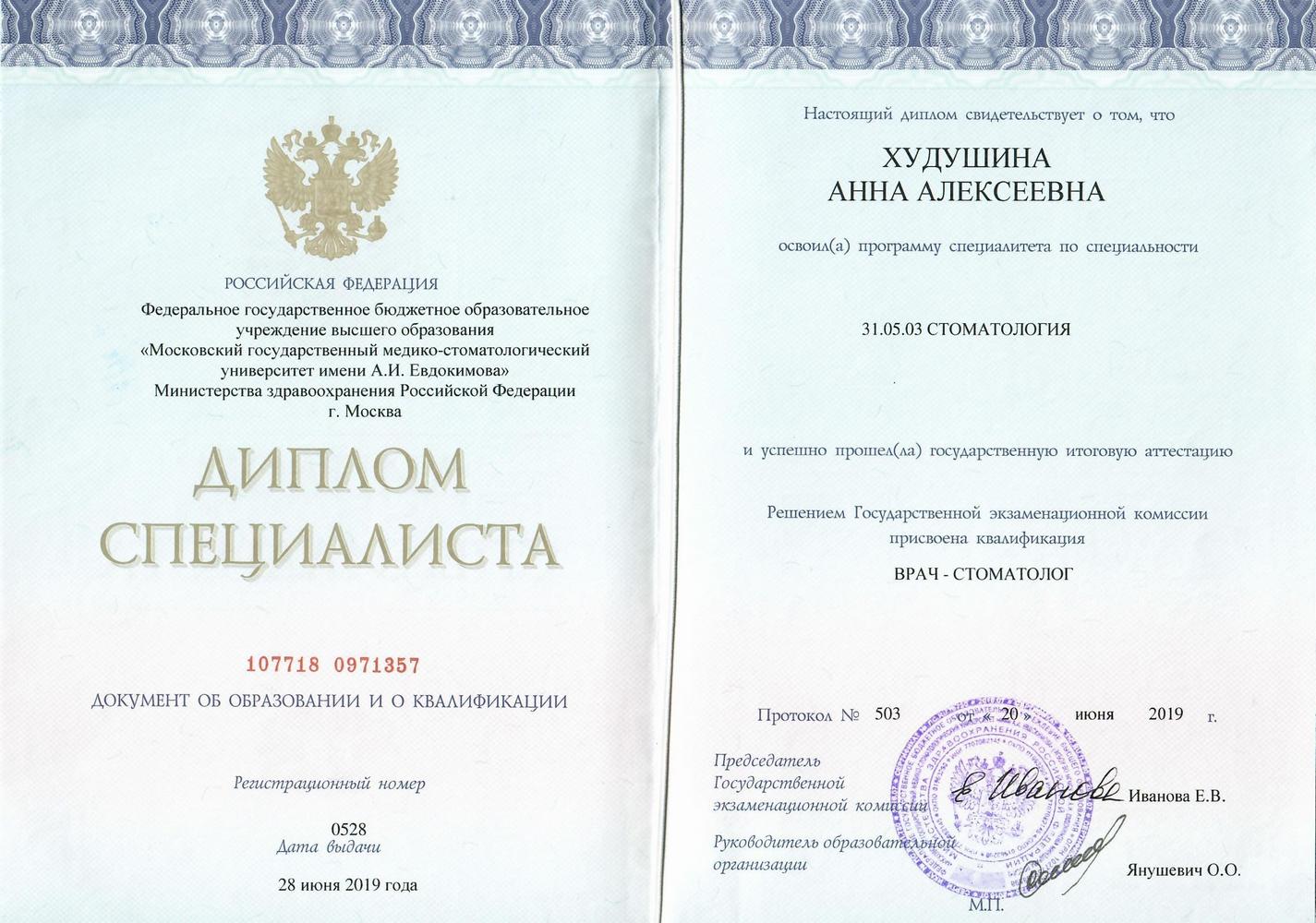2019г. – Московский государственный медико-стоматологический университет им. А.И.Евдокимова, специальность Стоматология