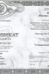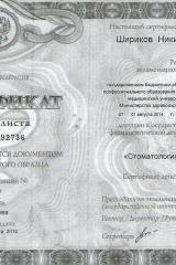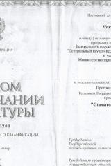 2020 г. — Удостоверение о повышении квалификации по специальности «Стоматология ортопедическая»