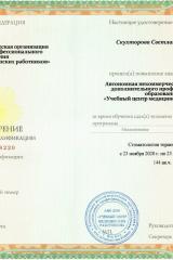 2020 г. — Удостоверение о повышении квалификации по специальности «Стоматология ортопедическая»