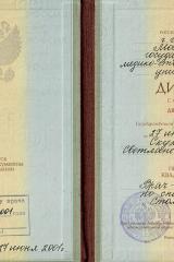 2001 г. — Диплом по специальности «стоматология», Московский медико-стоматологический университета